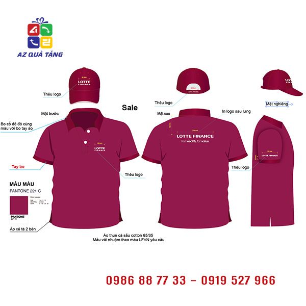 - Logo: in logo sau lưng, thêu logo trước ngực và tay áo.