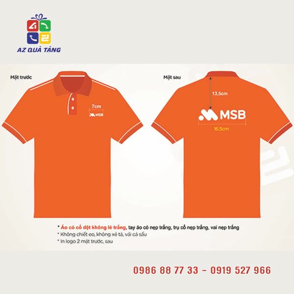 - In logo màu trắng mặt trước áo MSB 6,5cm. Mặt sau in logo MSB ngang 16,5cm
