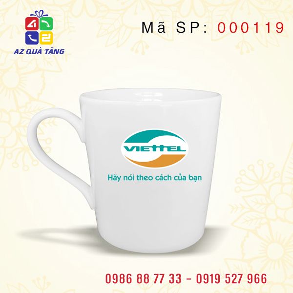 CỐC SỨ TRẮNG VÁT THẤP IN LOGO