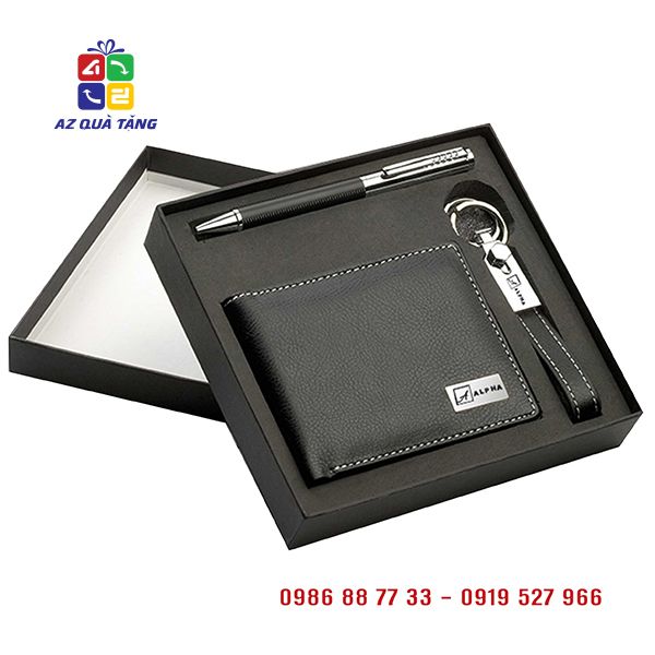 Bộ quà tặng gồm Ví, Bút ký và Móc khóa, các sản phẩm đều được in / khắc logo, là món quà tặng ý nghĩa gửi đến quý khách hàng của công ty.